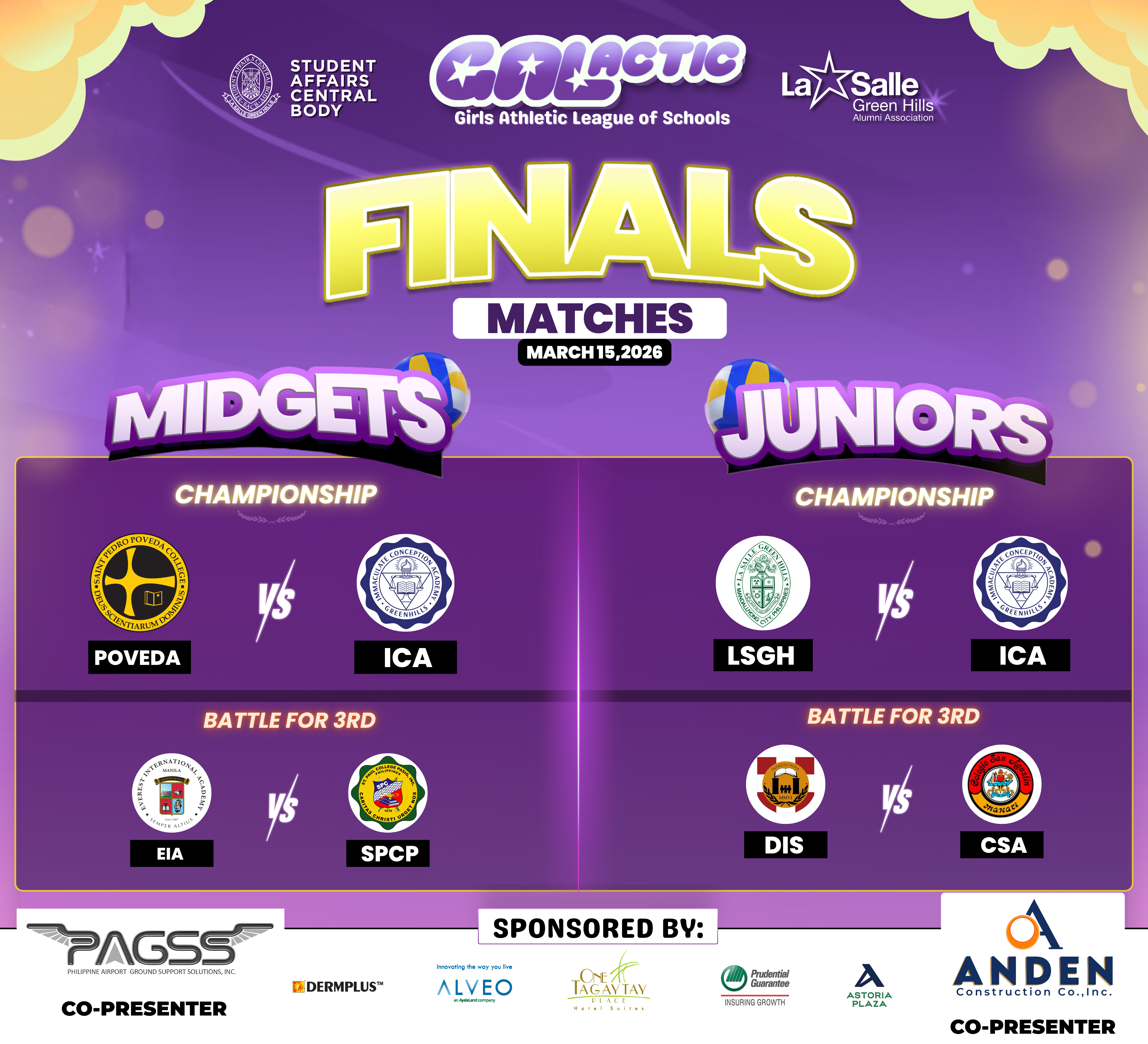Catch the best high school volleyball teams battle it out for the championship on March 15, 2026 β’ 8AM at the LSGH St. Benilde Gymnasium.Featuring celebrity volleyball stars Des Cheng and Kat Tolentino!